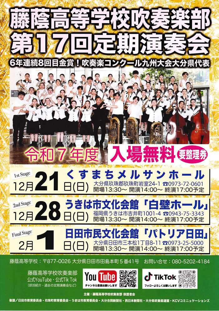 - 第17回 吹奏楽部 定期演奏会について 3公演 各日程決定