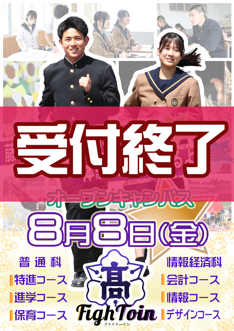 - 06.17(月) 藤蔭高等学校体験入学の当日日程公開しました。申込みお待ちしております。